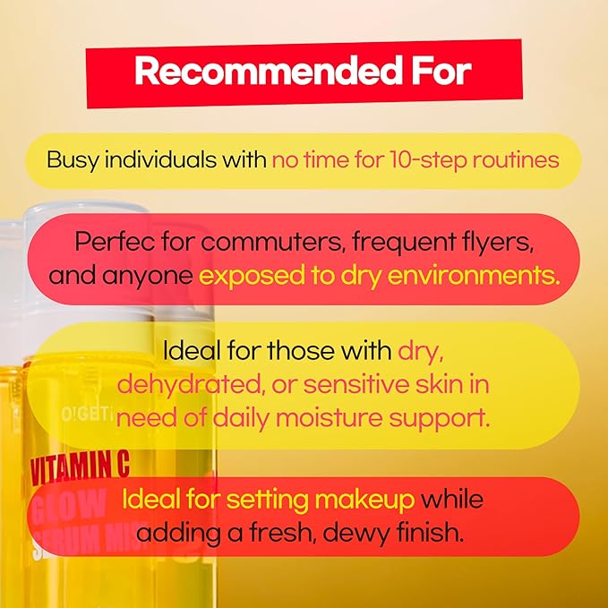 - Gentle Vitamin C Mist Serum with mist spray type that refreshes skin while adding energy and a healthy glow.