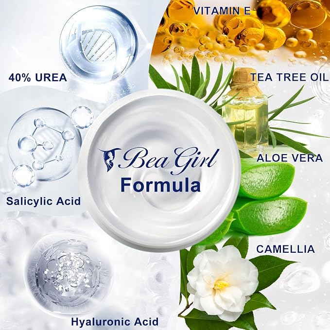 BeaGirl Urea Cream 40 Percent for Feet,Foot Cream & Hand Cream Maximum Strength with 2% Salicylic Acid,Hyaluronic Acid, for Dry Cracked Heels Feet Knees Elbows Hands-5.29 Fl.oz