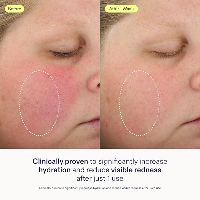 - CLINICAL RESULTS - Clinically proven to increase hydration and reduce visible redness after just 1 use. 100% said skin looks and feels healthier, 96% said this cleanser left skin feeling clean and soft, & 93% saw more radiant skin after 1 week.