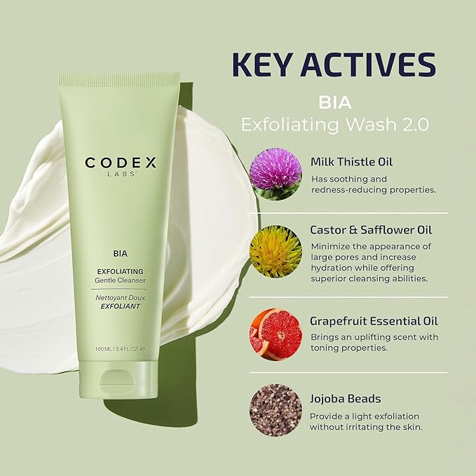 Bia Exfoliating Face Wash 2.0 - Gentle Facial Cleanser for Women, Dry & Sensitive Skin - Vegan Face Cleanser with Jojoba & Milk Thistle, All Skin Types, Cruelty-Free Skincare (3.4oz)