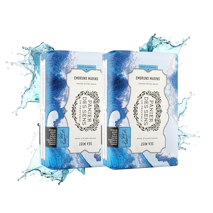 Panier des Sens Shea butter natural bar soap Sea Mist, bath & body soap bars - Made in France 95% natural - 2 bars, 7oz/200g each