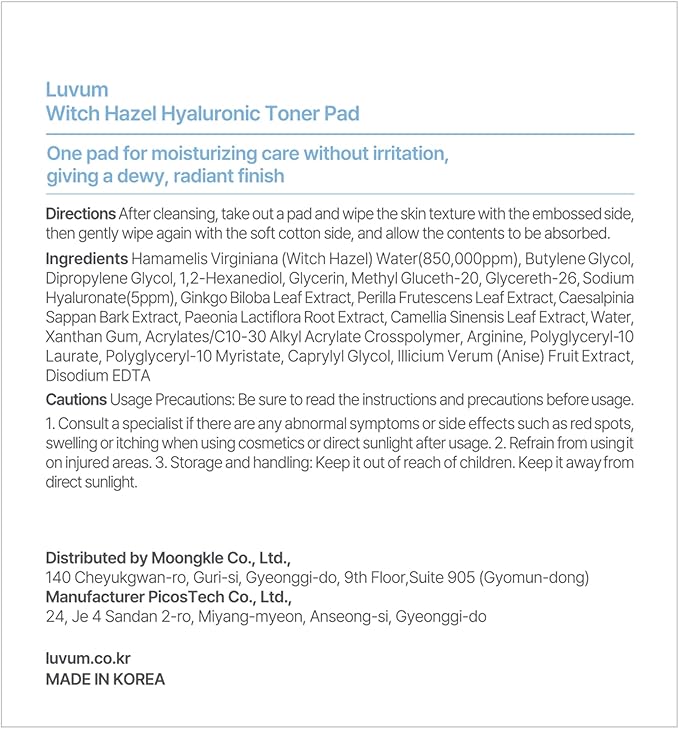 - Includes 60 double-sided Luvum Witch Hazel Hyaluronic Acid Toner Pad for refining and hydrating skin.