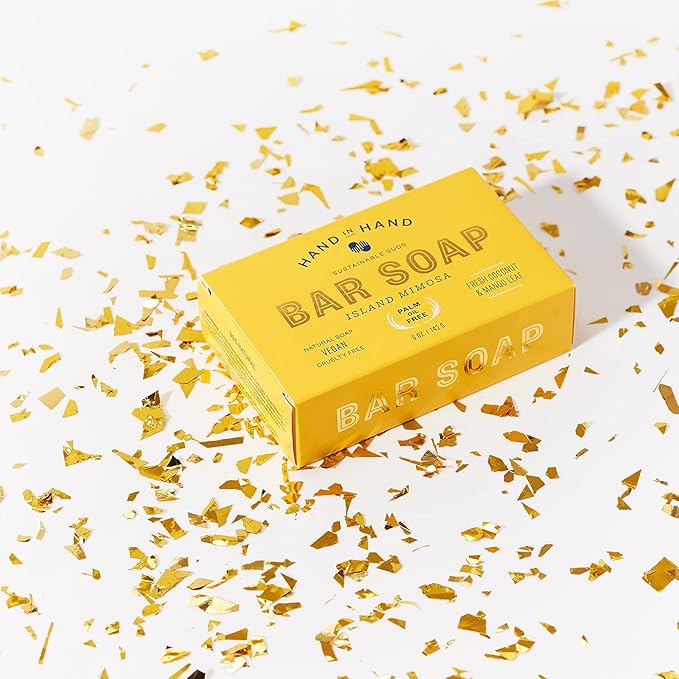 Hand in Hand Bar Soap, Nourishing Cleanser For All Skin Types, Organic Shea and Cocoa Butters, 5 Ounce, Fresh Coconut & Mango Leaf, Island Mimosa Scent, 4 Pack