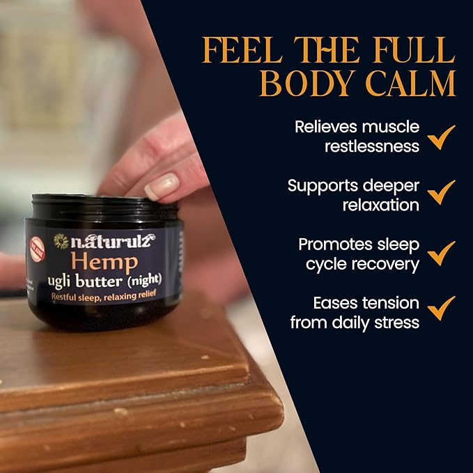 Ugli Butter Hemp Night Cream 4oz – Calming Massage Cream for Nighttime Routine with Lavender, Chamomile, Passionflower & Oregon Grown Hemp Extract, Supports Relaxation & Comfort for a Restful Night