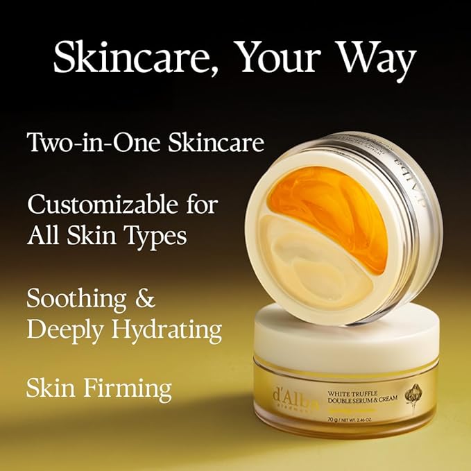 d'alba Piedmont Italian White Truffle Double Serum & Cream, Vegan Skincare, 2-in-1 Face Moisturizer, Vegan Collagen, Skin Firming and Tightening, Non Comedogenic, Suitable for All Skin Types (2.46 oz)