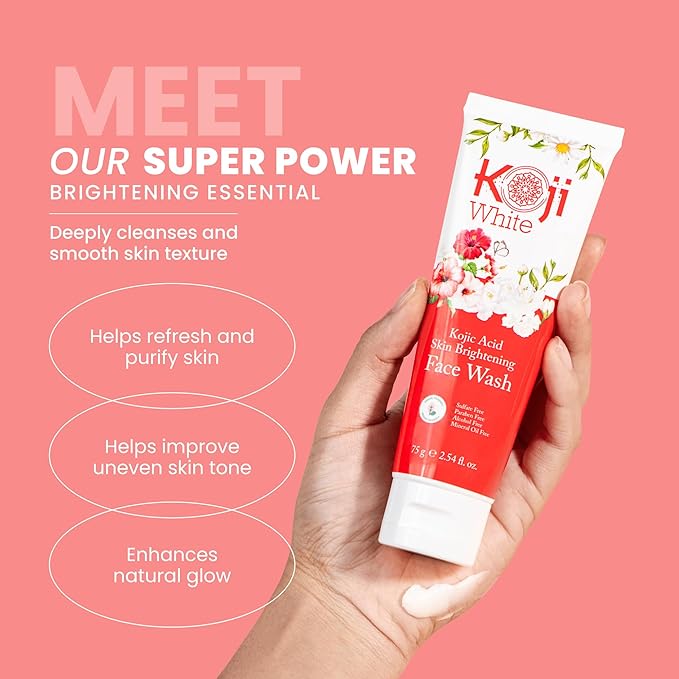 - MEET OUR SUPER POWER BRIGHTENING ESSENTIAL - Kojic Acid Cleansing Face Wash contains Kojic Acid,an extract of 4-flower and vitamin C impurities on your skin and in your pores leaving skin feeling clean and smooth.This efficacious face wash leaves skin feeling instantly refreshed and soothed.