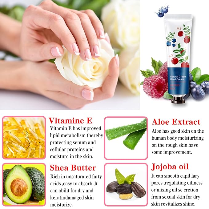 - đăLuxurious Natural Ingredients for Chapped HandsăHand cream features freshly cut aloe vera extract, shea butter, jojoba oil, vitamin E, this rich, deeply moisturizing hand cream leaves your hands hydrated, soft and smooth , Rejuvenate hands with youthful vitality.
