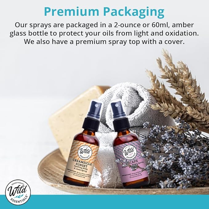 - PREMIUM PACKAGING: Our sprays are packaged in a 2 ounce / 60ml, amber glass bottle to protect your oils from light and oxidation. We also have a premium spray top with cover.