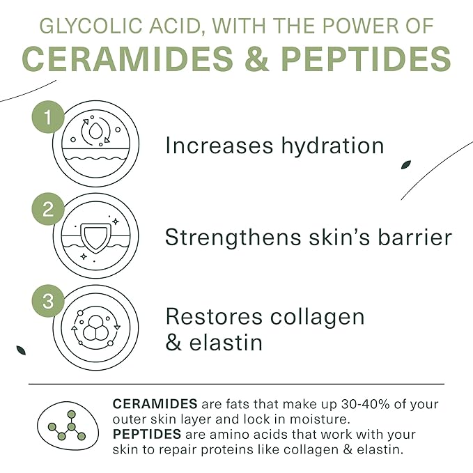 Botanic Tree Hydrating Glycolic Acid Cleanser - Exfoliating Face Wash - Face Cleanser for Women - Also with Ceramides & Peptides, Gently - for Dewy Bouncy Skin - 6oz