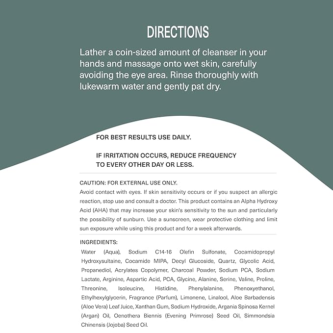 - Men's Exfoliating Cleanser: Great for sensitive, oily and breakout prone skin. Formulated with 2.5% glycolic & salicylic acid and Activated Charcoal. Our gentle yet effective glycolic peel reduces breakouts and dark spots.