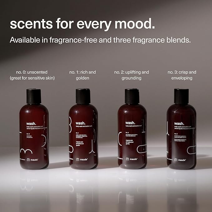 MAUDE Wash No. 0 - pH Balanced Moisturizing Body Wash & Bubble Bath - With Vitamin C & E for Whole-Body Skin & Feminine Care - Skin-Softening Shower Gel - Unscented (12 fl oz)
