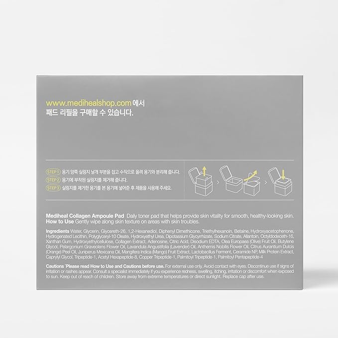 MEDIHEAL Collagen Ampoule Facial Toner Pads - Collagen & Ceramide - Skin Firming & Restore Elasticity & Deep Hydration - Tighten Wrinkles & Lines - Vegan Eco Silk Fabric, 100 Pads