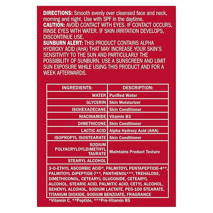 - VITAMIN C + PEPTIDE 24 MAX INGREDIENTS: Formulated with Vitamin C and Dermatologist recommended peptides, this product supports skinâs natural renewal process and contains Niacinamide to visibly improve wrinkles