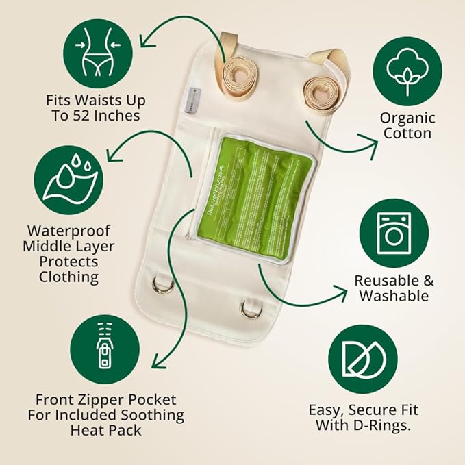 - Organic Unbleached Cotton Castor Oil Compress Wrap: Our pack is made from organic, unbleached cotton and is designed to provide maximum comfort and ease of use. It is soft, and flexible and can fit waists up to 52 inches. The wrap has a front zipper pocket, an ideal spot for the included heating pack. It is washable and reusable.
