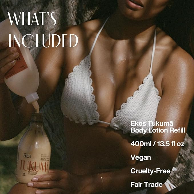 - Meet Ekos Tukumã - A moisture restoring body lotion that boosts hyaluronic acid while preventing signs of aging. Deliciously scented with a floral fragrance that combines the creamy yet fruity aspect of the exotic Tukumã pulp with a rustic woody, and warm amber finish.