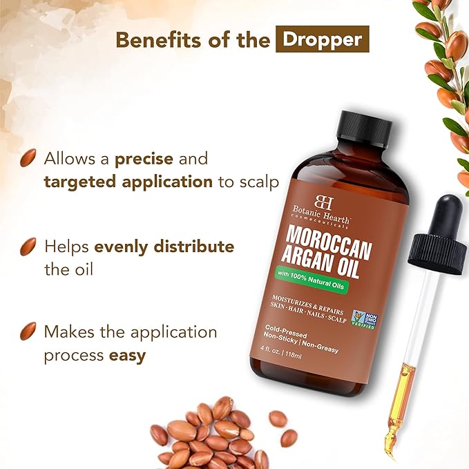 - Restores & Nourishes: The Botanic Hearth Argan Hair Oil deeply hydrates and nourishes dry and damaged hair, helping restore natural moisture and repair brittle ends