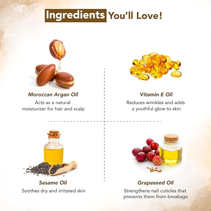- Non-Sticky & Non-Greasy: The argan oil for hair growth is replete with the goodness of natural ingredients, is non-greasy, fast-absorbing, and is an ideal hair growth oil for men and women