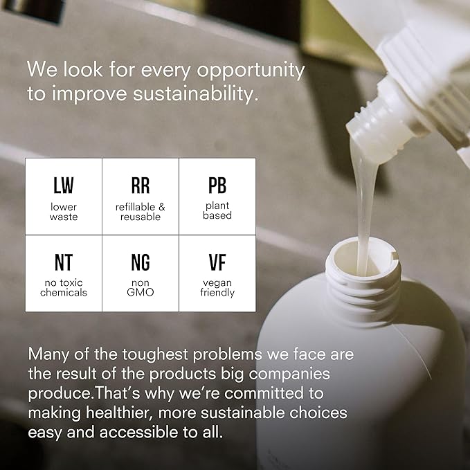 - Less Waste - Designed with sustainability in mind, our 34 ounce shampoo is ideal for refilling our 12 ounce bottle or one of your own.
