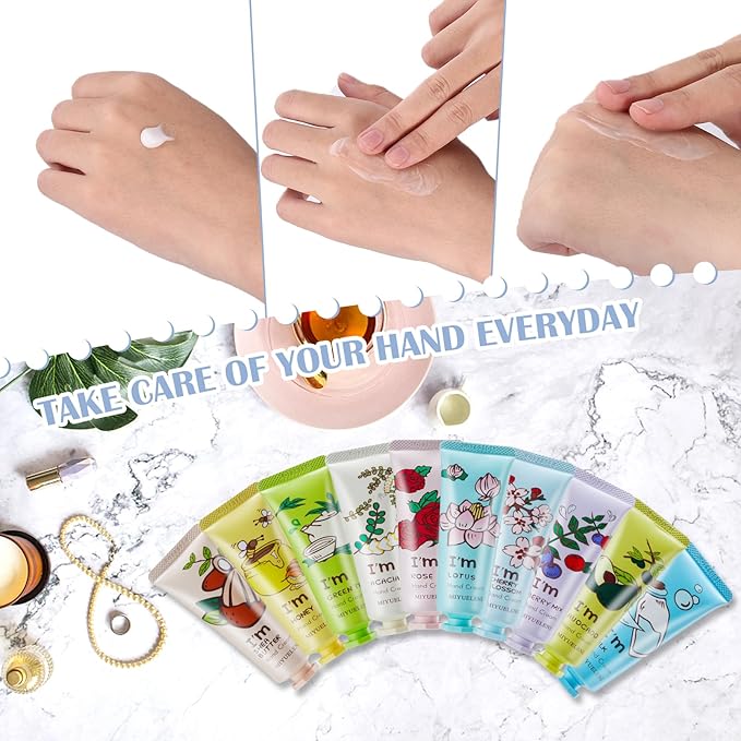 - Value Hand Cream Set: The hand cream gift set contains 30 sets of 10 scents, Green Tea, Berry Blend, Rose, Avocado, Milk, Cherry Blossom, Honey, Shea Butter, Lotus, and Acacia, enough quantities and scents to choose from!