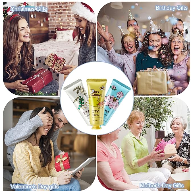 - Hand Cream Gift Set: Moisturizing hand cream has a unique look and feel with an octagonal swivel cap and flower shaped bottle top, making it the great gift for Christmas, birthdays, Valentine's Day, anniversaries, Mother's Day, or any other special holiday.