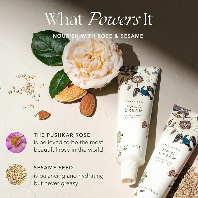 RANAVAT Restoring Hand Cream - Daily Hand Lotion for Dry Hands with Damask Rose - Non Greasy Hand Lotion for Everyday Dryness - Hydrates with Almond Oil & Vitamin E (1.7 oz)
