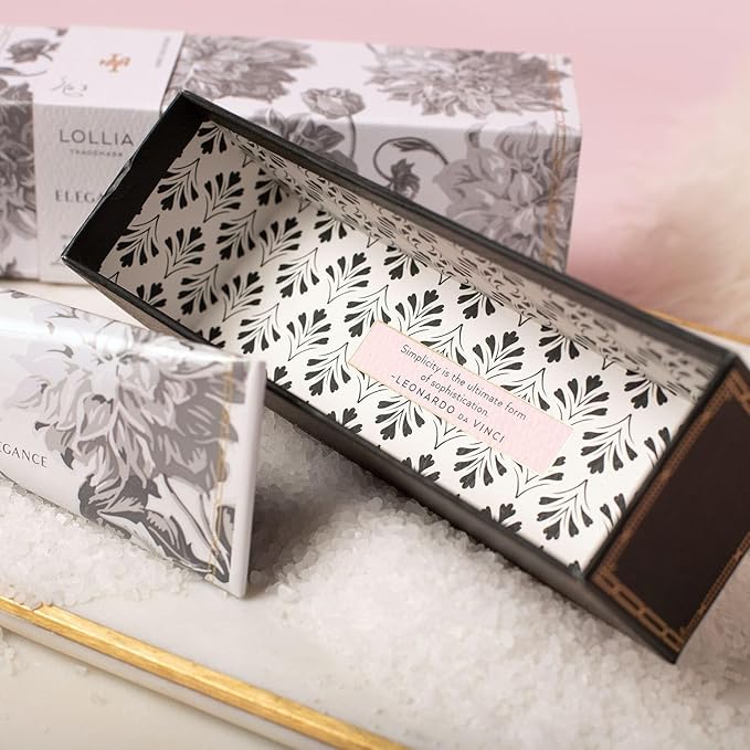 - WHITE AMBER & MIRABELLE: Lollia Elegance Handcreme moisturizes the skin for beneficial hydration to leave the skin radiant. Lingering notes of opulent White Amber and Mirabelle provide a beautiful fragrance to captivate the senses.