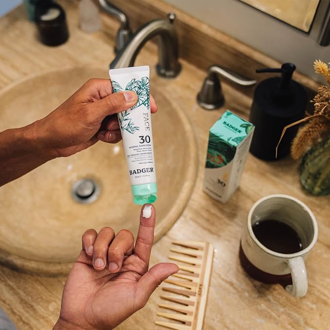 Badger Mineral Face Sunscreen with Zinc Oxide, Sunblock Lotion Moisturizer with SPF 30, Vegan, Unscented, Lightweight Mineral Sunscreen for Face, 1.7 fl oz
