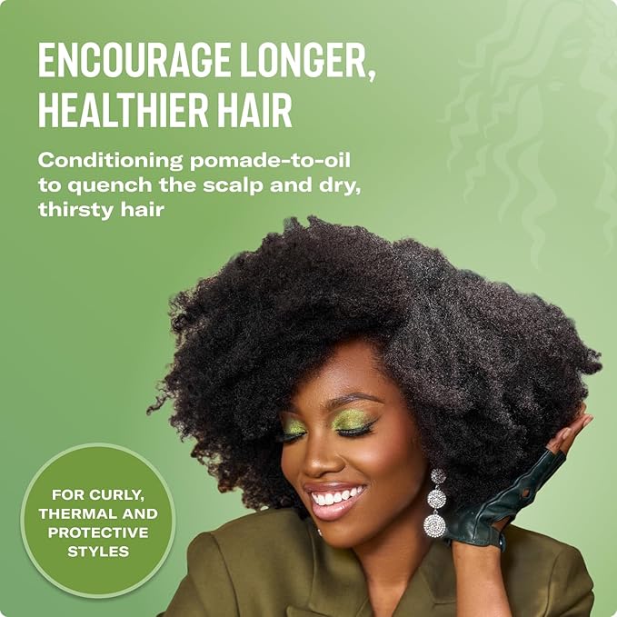 - Pomade-to-Oil Transformation - This unique formula starts as a pomade and melts into a lightweight oil based pomade, delivering deep moisture and manageability for curly, straightened, and protective styles. It can also be used to lock your wave pattern in place without flaking or stiffness.