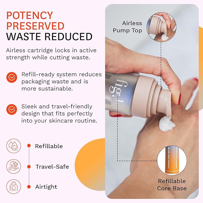 - Sustainable & Clean: Fig.1 Glycolic Glow Treatment is formulated with a focus on eco-conscious beauty. The product is vegan, cruelty-free, fragrance-free, and comes in refillable packaging. Clinically proven and made in the USA with global materials, it delivers high-performance skincare that’s good for your skin and the planet.