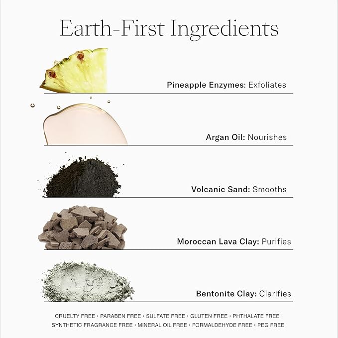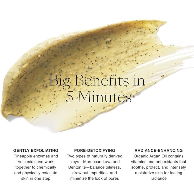 - Dual-Action Exfoliation with Two Purifying Clays - This pore minimizer mask features two types of detoxifying, naturally derived clays—Moroccan lava and bentonite clay —which work together to balance oiliness, draw out impurities, and help purify and reduce the appearance of pores.