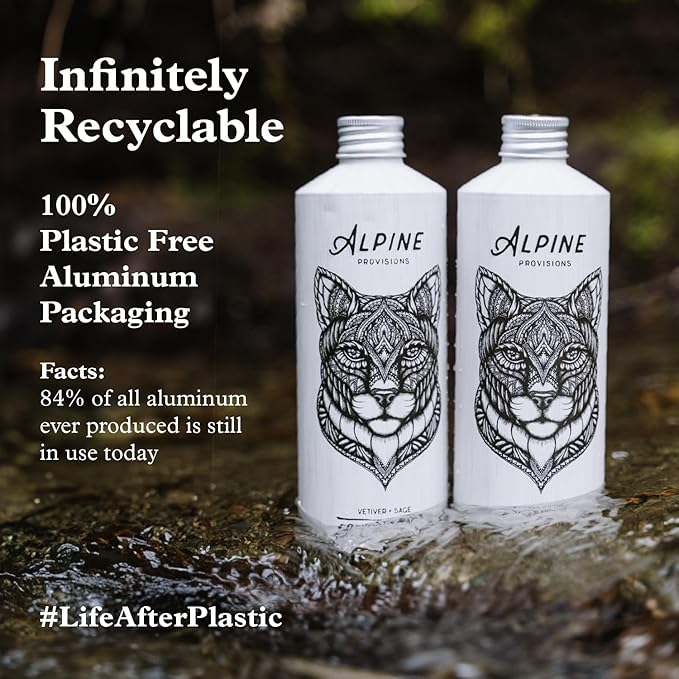 Alpine Provisions Natural Fir & Sage Body Wash – Refreshing & Moisturizing with Essential Oils, Aloe Vera & Coconut Oil – Vegan, Sulfate-Free, Plastic-Free Aluminum Bottle – 16.9 FL Oz