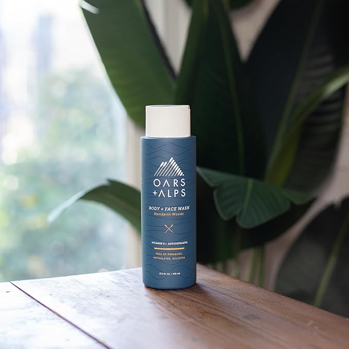 Oars + Alps Mens Moisturizing Body and Face Wash, Skin Care Infused with Vitamin E and Antioxidants, Sulfate Free, Mandarin Woods, 13.5oz, 2 Pack