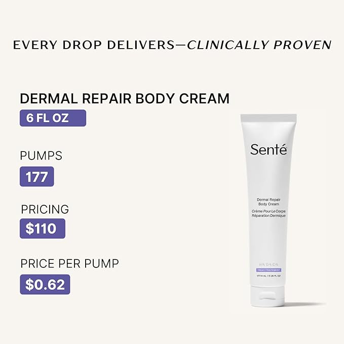 Senté Dermal Repair Body Cream | Restore Skin's Barrier | Soothes Sensitive Skin | Promotes New Collagen Production for Firmer Skin | 6 Fl Oz