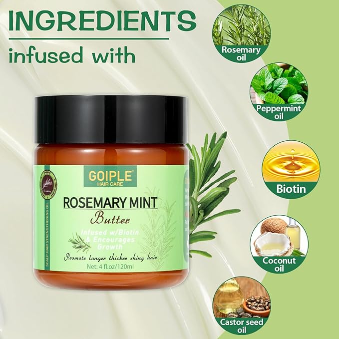 - 【Crafted for Healthy Hair】Formulated with care, this organics rosemary mint butter is crafted with natural ingredients to promote healthy hair. Free from harsh chemicals, it helps restore and maintain the vitality of your hair.
