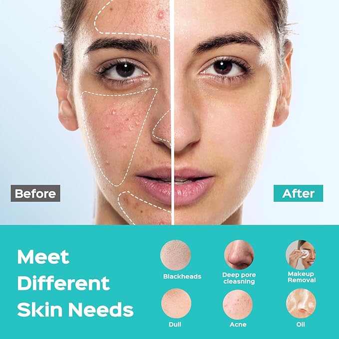 - FULL FACE CLEANSING DESIGN: Compared to other similar products on the market, our silicone facial scrubber features thickened soft silicone bristles at the top, making it easy to clean hard-to-reach areas such as the sides of the nose and the T-zone. The large-area ultra-fine brush is suitable for daily large-area cleaning. After full face cleansing, it allows your moisturizer, serums, and other skincare products to be absorbed more easily by the skin, maximizing their effectiveness. 99% of users experience better absorption of skincare products