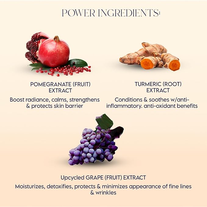 - Hydrating Excellence: Our hydrating serum absorbs deep into the skin, enriched with antioxidants and upcycled Grape and Pomegranate Extracts to replenish moisture and leave your skin with a long-lasting moisture and glow.