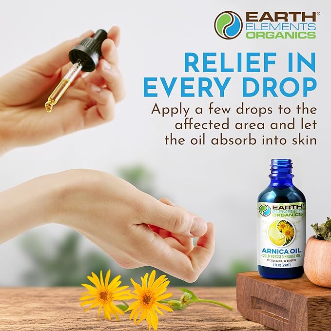 - CRAFTED WITH PURPOSE, MADE FOR YOU: At Earth Elements Organics, we believe in keeping things simple and effective. This blend of arnica herb and oil for skin is made with traditional care and contemporary methods. Sunflower seed oil enriches the formula, making it suitable for massage, face, body, or as an addition to creams and balms.