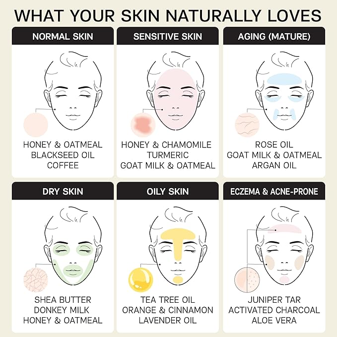 - MOISTURIZING & NOURISHING - Enriched with natural oils known for their antibacterial properties, our soap helps fight acne and unclog pores. It not only cleanses but also deeply moisturizes and nourishes the skin.