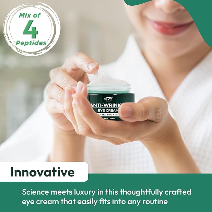 Vivo Per Lei Vitamin C Eye Cream - Retinol Eye Cream for Wrinkles - Moisturizing Eye Cream for Puffiness and Bags Under Eyes - Anti Aging Eye Cream with Peptides - 1.7 Fl. Oz.