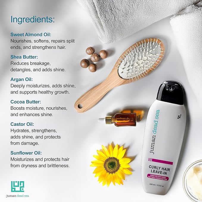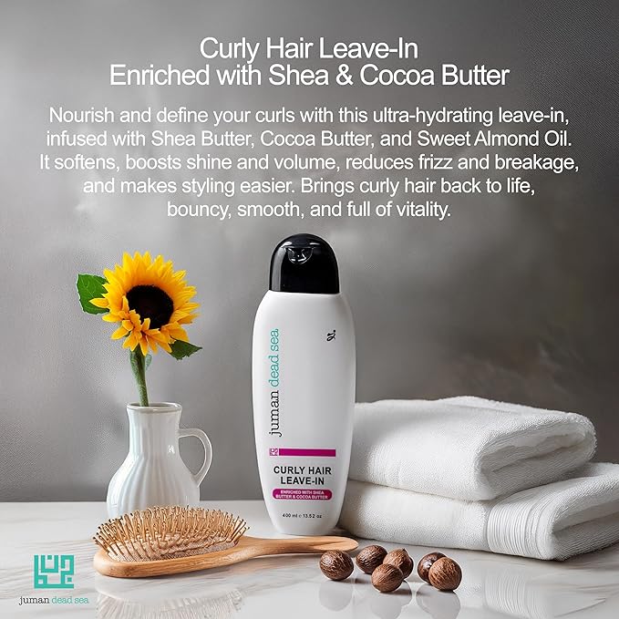 Juman Dead Sea Curly Hair Conditioner | Enriched with Shea & Cocoa Butter | Hydrating Hair Conditioner with Essential Oils | Keeps Long Curly Hair Intact | 13.5 Ounce