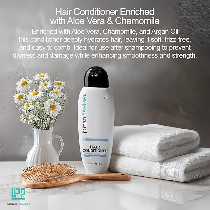 Juman Dead Sea Leave-in Conditioner | Enriched with Aloe Vera & Chamomile Extract | Hydrating Hair Conditioner | Repairs Damaged & Color-treated Hair | For Normal & Dry Hair Types | 13.5 Ounce