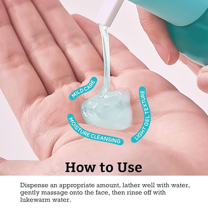 - BOUNCY JELLY TO SOFT FOAM β The cleanser transforms from a bouncy jelly texture to a mild, low pH foam upon contact with water, ensuring a thorough, moisturizing cleanse without leaving skin tight or dry. Gently massage a small amount onto damp skin, creating a soft foam that deeply cleanses pores without stripping the skin. Rinse thoroughly with lukewarm water. Embrace the purity and lightness of facial cleansing with our Gel Cleanser, your gateway to a refreshed and balanced complexion.