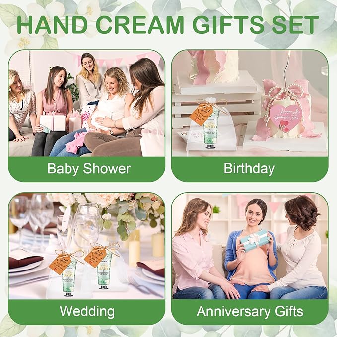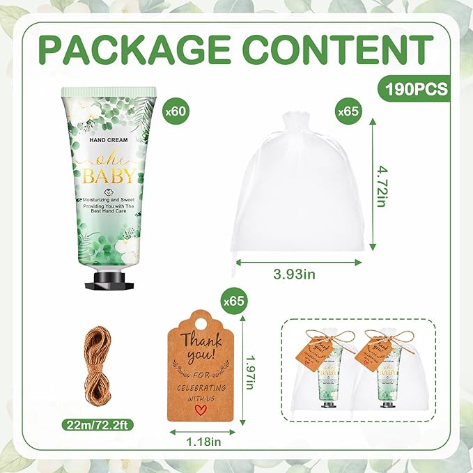 - 【Baby Hand Cream Gift Set】Our baby shower hand cream is the perfect baby shower thank you gifts at baby shower parties. The set includes 60 pcs cherry blossom flavored hand creams, 65 organza bags, and 65 thank-you tags, making it an ideal choice for baby showers, bridal showers, birthday parties, christmas, and thanksgiving.