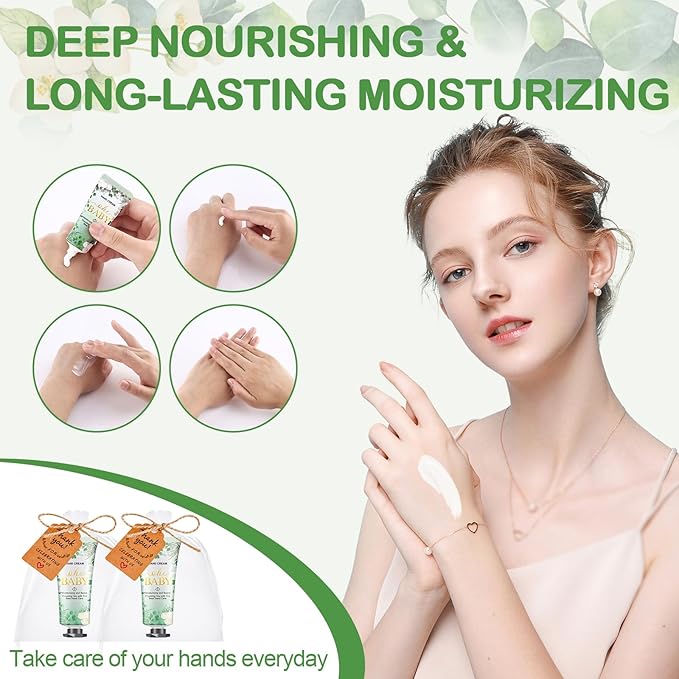 - 【Deep Moisturizing & Nourishing】This thank-you gift set's hand cream is composed of natural plant extracts, shea butter, vitamin E, honey, and aloe vera. Helps the skin absorb quickly and maintain long-lasting moisture, without being greasy, suitable for most skin types, providing effective assistance to dry skin and deep nourishment.