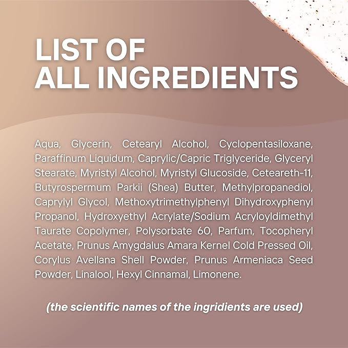 - Exfoliation: Utilizes natural exfoliants such as hazelnut shell and apricot kernel granules to gently remove dead skin cells, revealing a smoother and more refined skin texture.