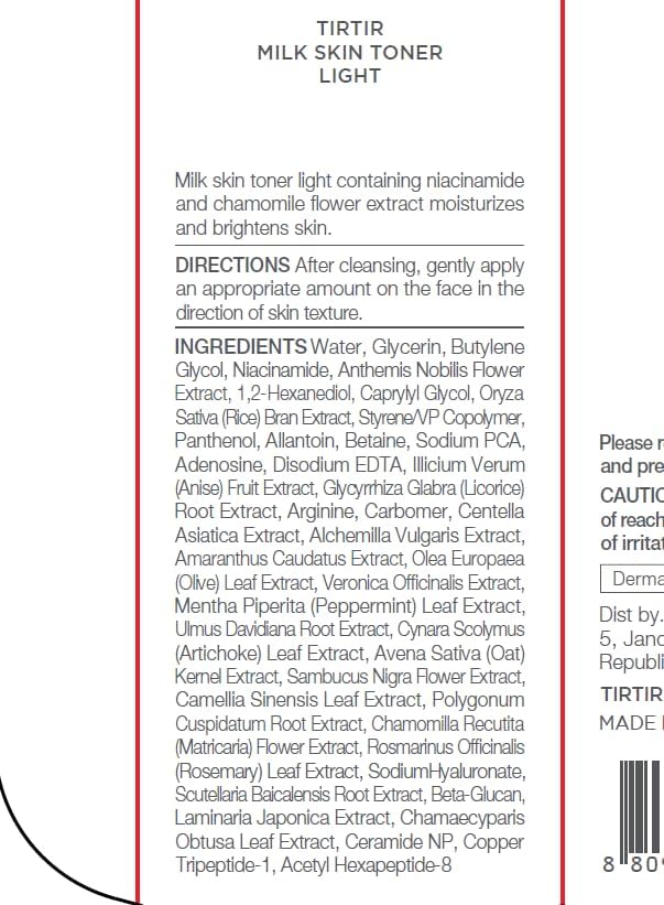 - [MORE MOISTURE, LIGHTER FEEL] TIRTIR Milk Skin Toner Light contains 4% Niacinamide (2x the original!) to provide moisture-balanced skin while controlling excess sebum and oil. Quickly absorbed, it leaves a hydrated, dewy, non-sticky finish filled with moisture. Perfect for achieving that coveted "Glass-Skin Look," even in dry and hot seasons. Pair it with TIRTIR Cushion Foundation for flawless results!