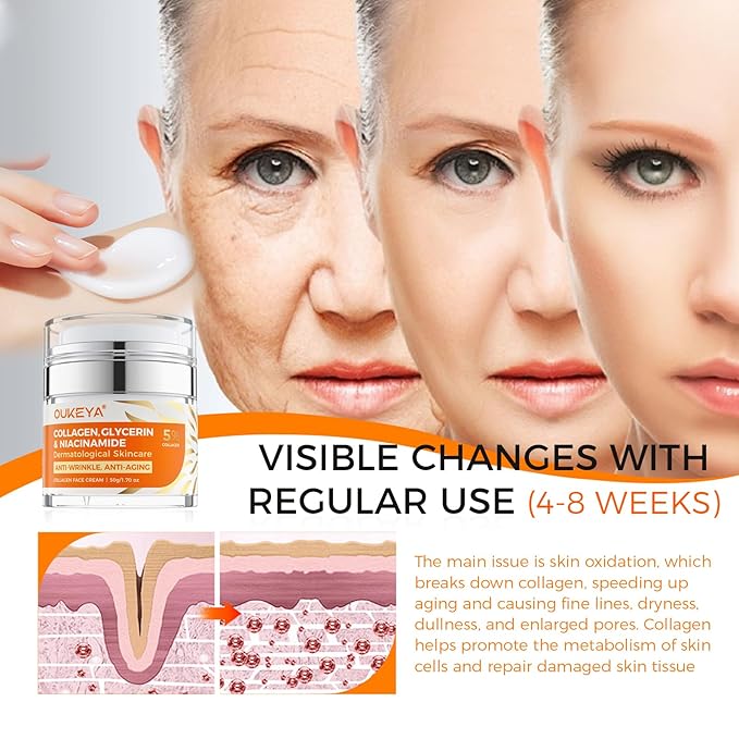 OUKEYA Collagen, Retinol & Hyaluronic Acid Cream - Anti-Aging Face Moisturizer for Face, Neck & Décolleté, Daily Moisturizer Face Cream - 1.7 fl.oz with 5% Hyaluronic Acid Niacinamide