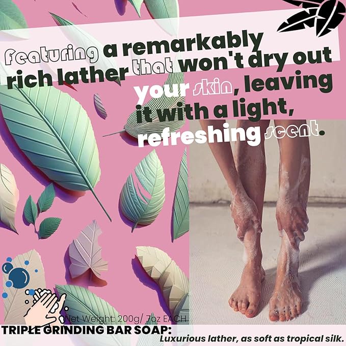 - TROPICALLY SOURCED LUXURY:Embrace the lush essence of the tropics with our exquisite soap, crafted from the finest natural ingredients sourced directly from the heart of the tropical paradise. Each bar is a testament to meticulous processing and attention to detail, offering a luxurious bathing experience that indulges your senses. Infused with vibrant botanicals and rich in moisturizing properties, our soap transforms your daily cleanse into an escape to an oasis of tranquility and opulence.