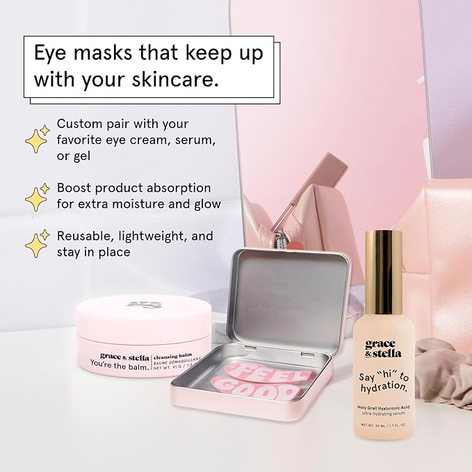 grace & stella Reusable Eye Patches (1 Pair) - Silicone Reusable Under Eye Patches for Dark Circles - Up to 1 Year of Daily Use, With Tin Case - Puffy Eyes Treatment for Women - Vegan Cruelty Free