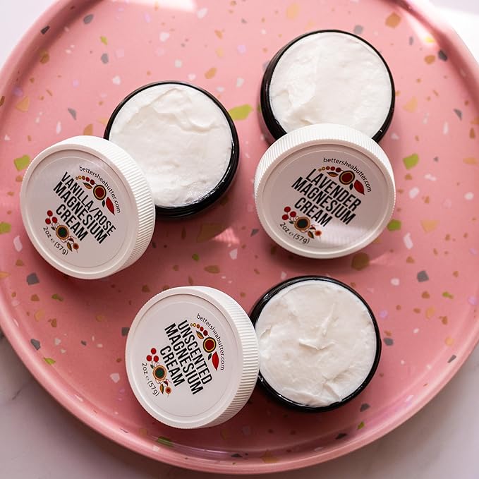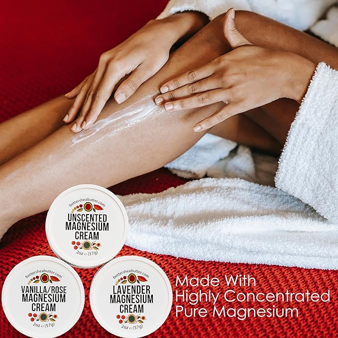 Better Shea Butter Magnesium Cream Variety Pack | for Leg Cramps | Vanilla Rose, Unscented and Lavender Travel Size Lotion Minis for Women and Men | Safe for Pregnancy, Kids & Babies 3 x 2oz Jars